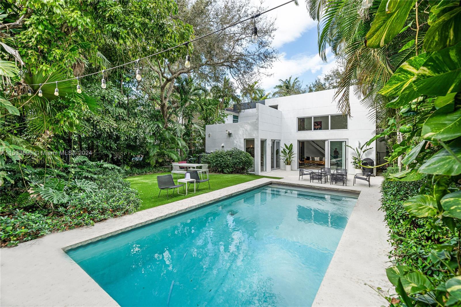 Seize the opportunity to reside in the sought-after south coconut grove! designed by the awarded architect roney mateu, this home stands as a contemporary design masterpiece, featuring chic and minimalist aesthetics. The residence is bathed in light, offering expansive views of lush vegetation. Its layout ensures tranquility and privacy. The house offers 3 bedrooms, 3 bathrooms, a family room, an office easily convertible to a bedroom, and a two-car garage. High ceilings and generous interiors, together with the meticulously maintained grounds and a pool, establish this jewel as a haven of luxury and style. Situated just a short distance from the village, with its boutiques, restaurants, and some of the best schools. Only minutes away from marinas, mia airport, brickell, and the beaches. ...